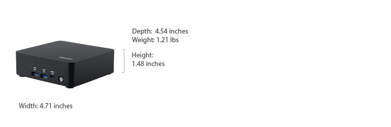 The Cubi NUC AI Series Mini PC comes in a palm-sized 119.60 x 115.20 x 37.50 mmcase (0.51L/1.08Kg) with far less performance trade-off compared to laptops.