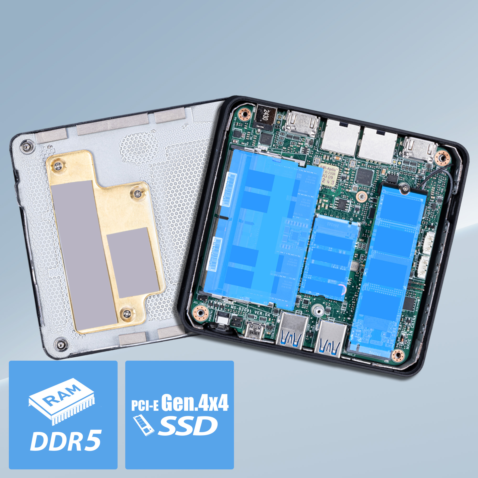 RAM capacity: The Cubi NUC AI Series can support DDR5 5200MHz memory (2 x SO-DIMM, up to 64GB).