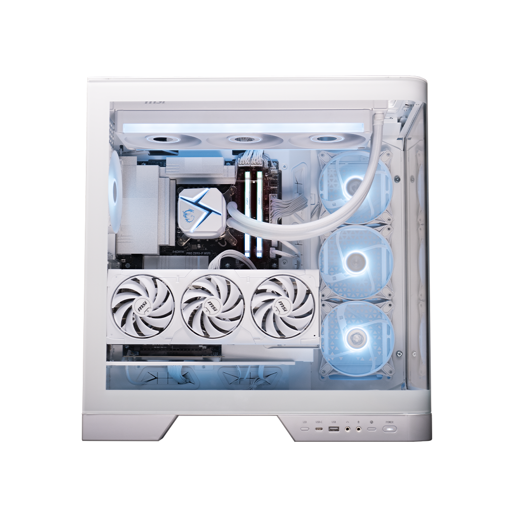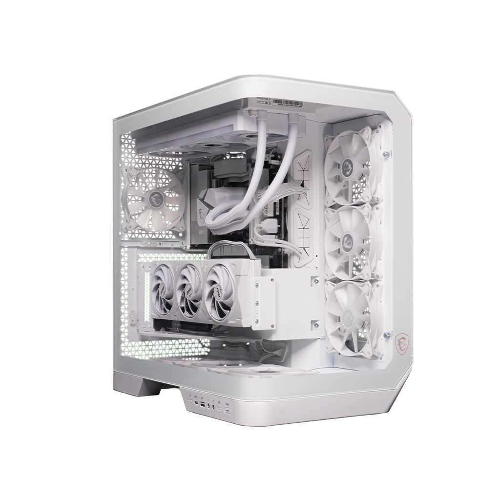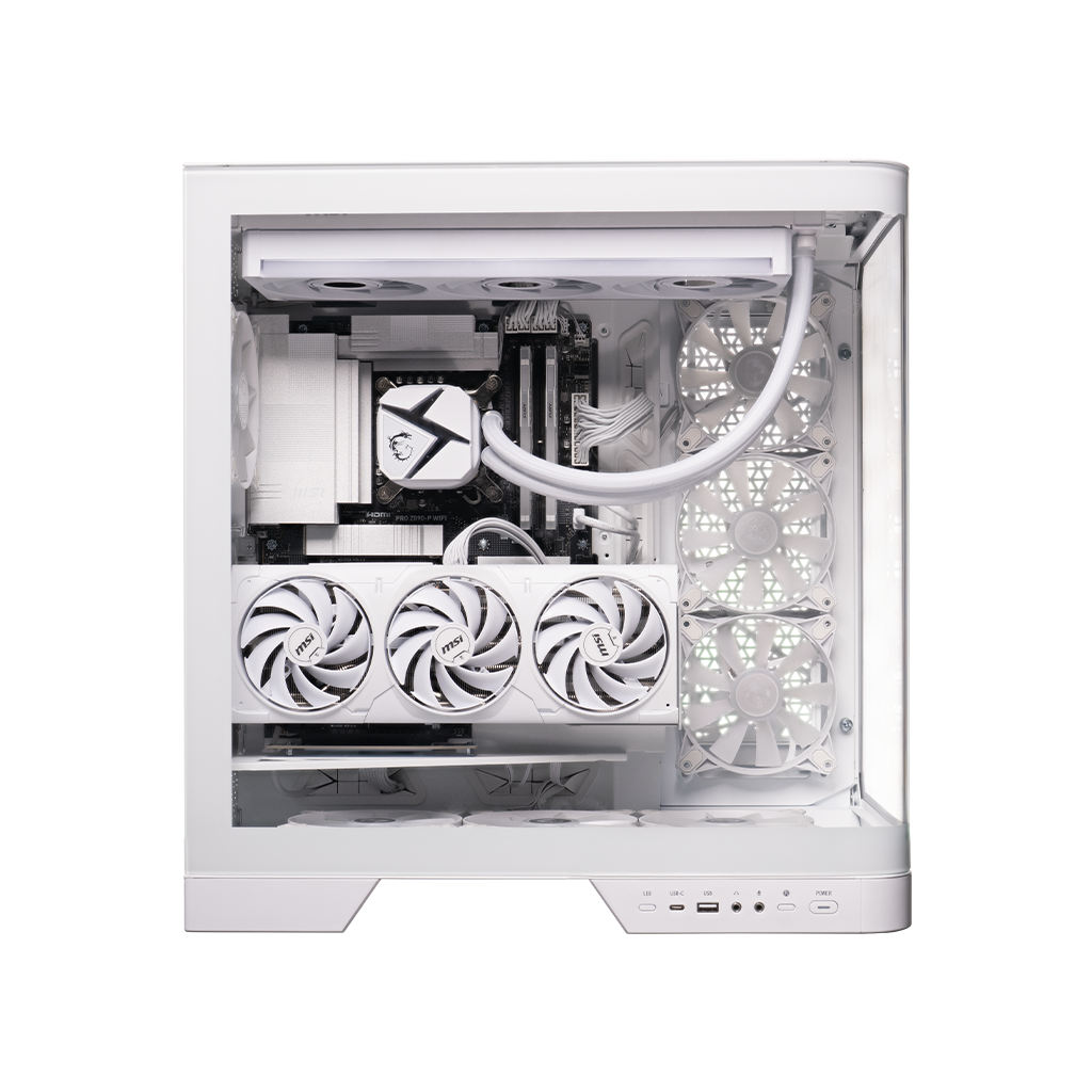 The Vision RS AI 2NVV7-1466US sets its sights on combining the very best in cutting-edge gaming technology from NVIDIA and Intel into a spectacular eye-catching design. If you got it flaunt it, built into the MSI Maestro chassis, a one-piece 270-degree tempered glass panel provides a panoramic view of the interior without obstructive metal at the corners, ensuring a seamless showcase of internal components.