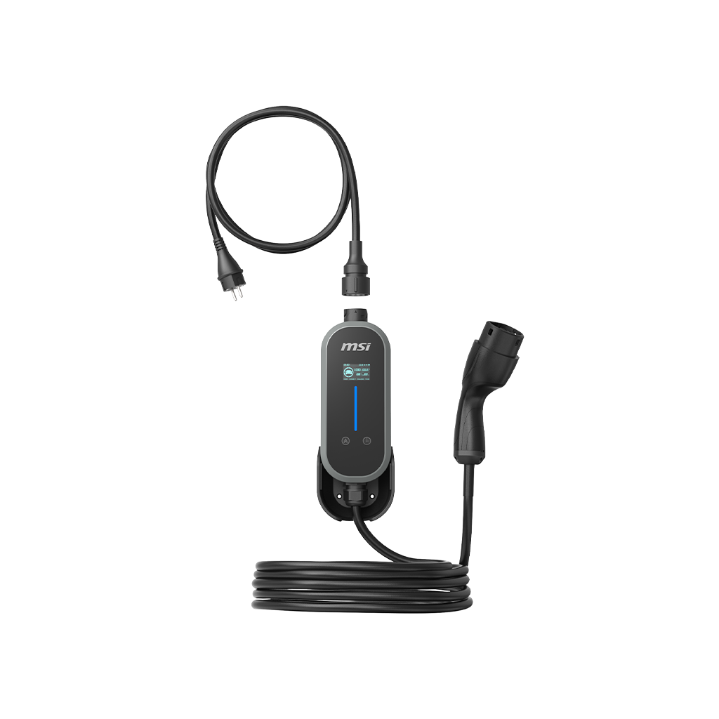 MSI EZgo Portable delivers reliable EV charging anywhere—at home or on the road. Designed for durability, it’s IP66-rated and operates from -30°C to 50°C. Use the aConnect app to control sessions, track energy, and schedule charging. Includes a carry case and sleek color options.