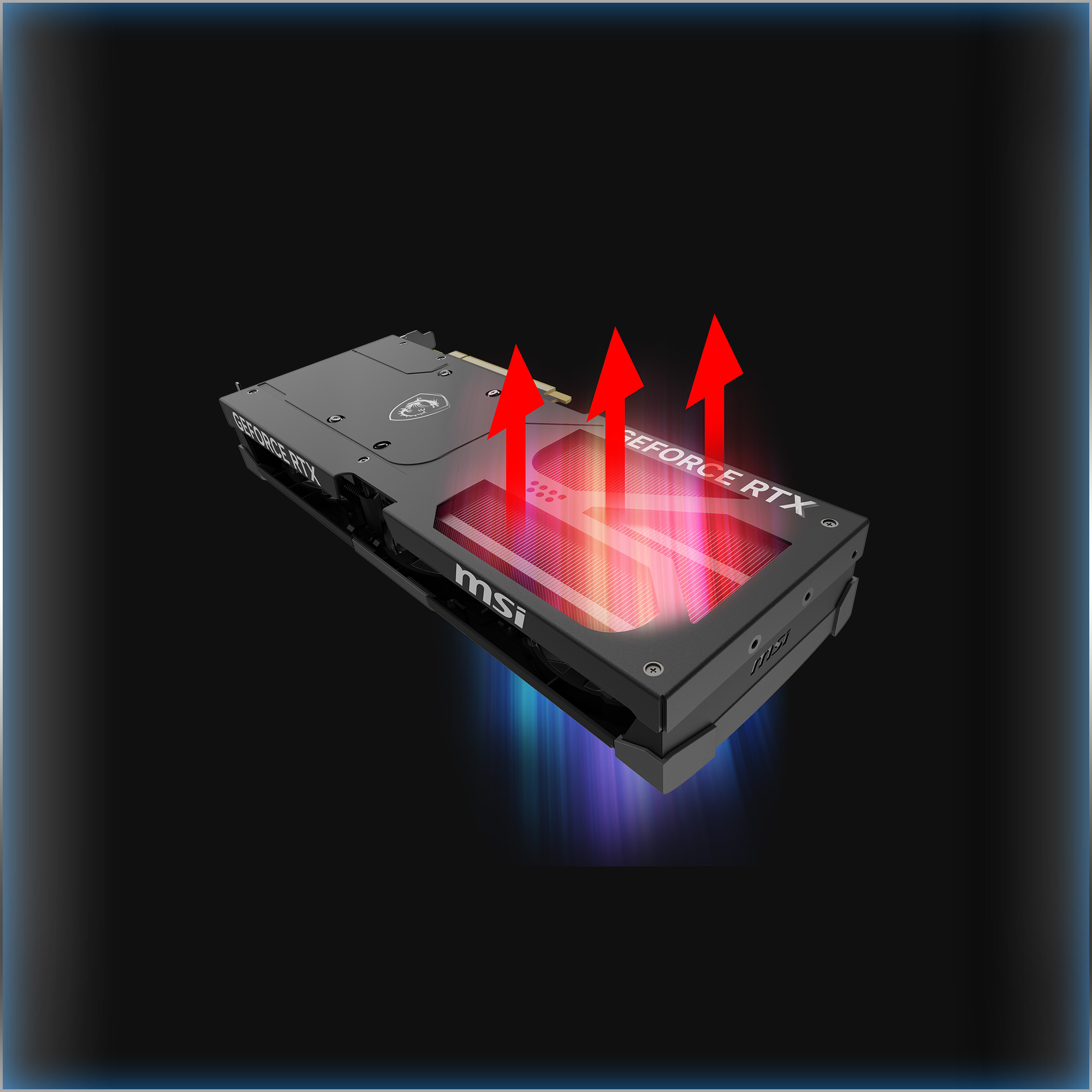 Advanced Vapor Chamber : Built-in Vapor Chamber swiftly transfers heat from the GPU and VRAM to the core pipe for optimal dissipation.