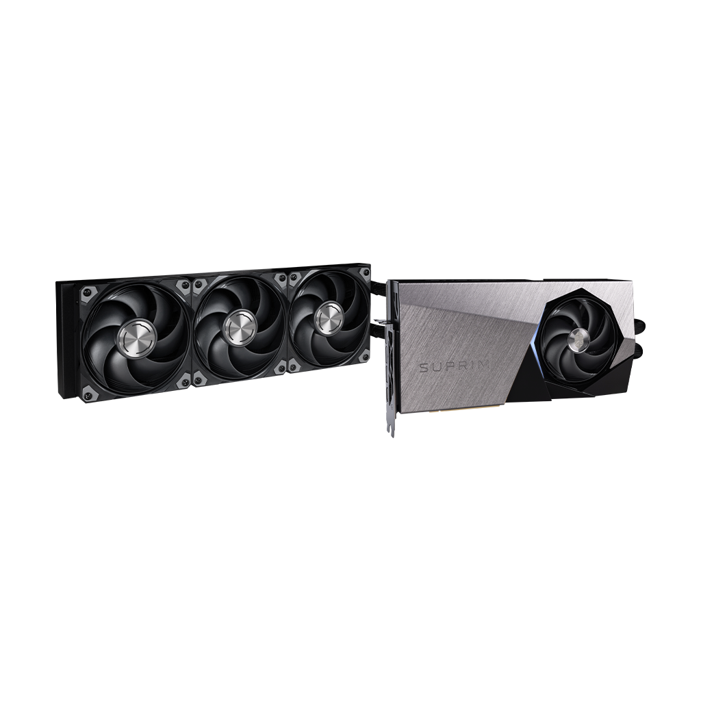 • Hybrid Cooling: SUPRIM LIQUID combines liquid and STORMFORCE air cooling for GPU and VRAM
