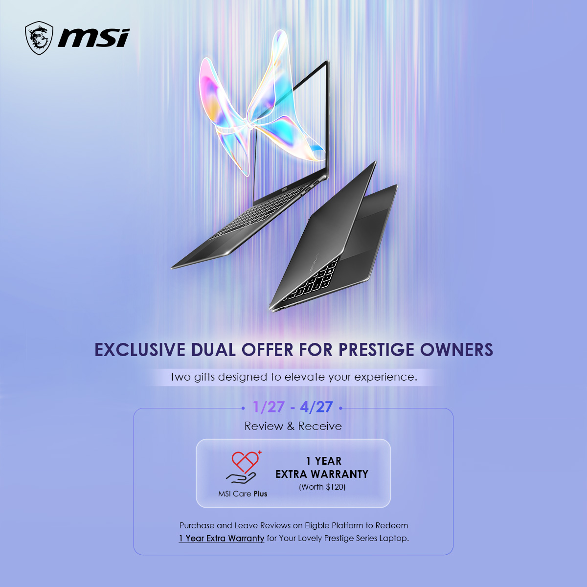 Powered by the latest Intel® Core™ Ultra X7 Series 3 processor, the Prestige Series delivers fast AI acceleration, efficient performance, and smooth responsiveness when working or creating. Its ultra-light, portable design helps you to stay productive and energized throughout your day.
