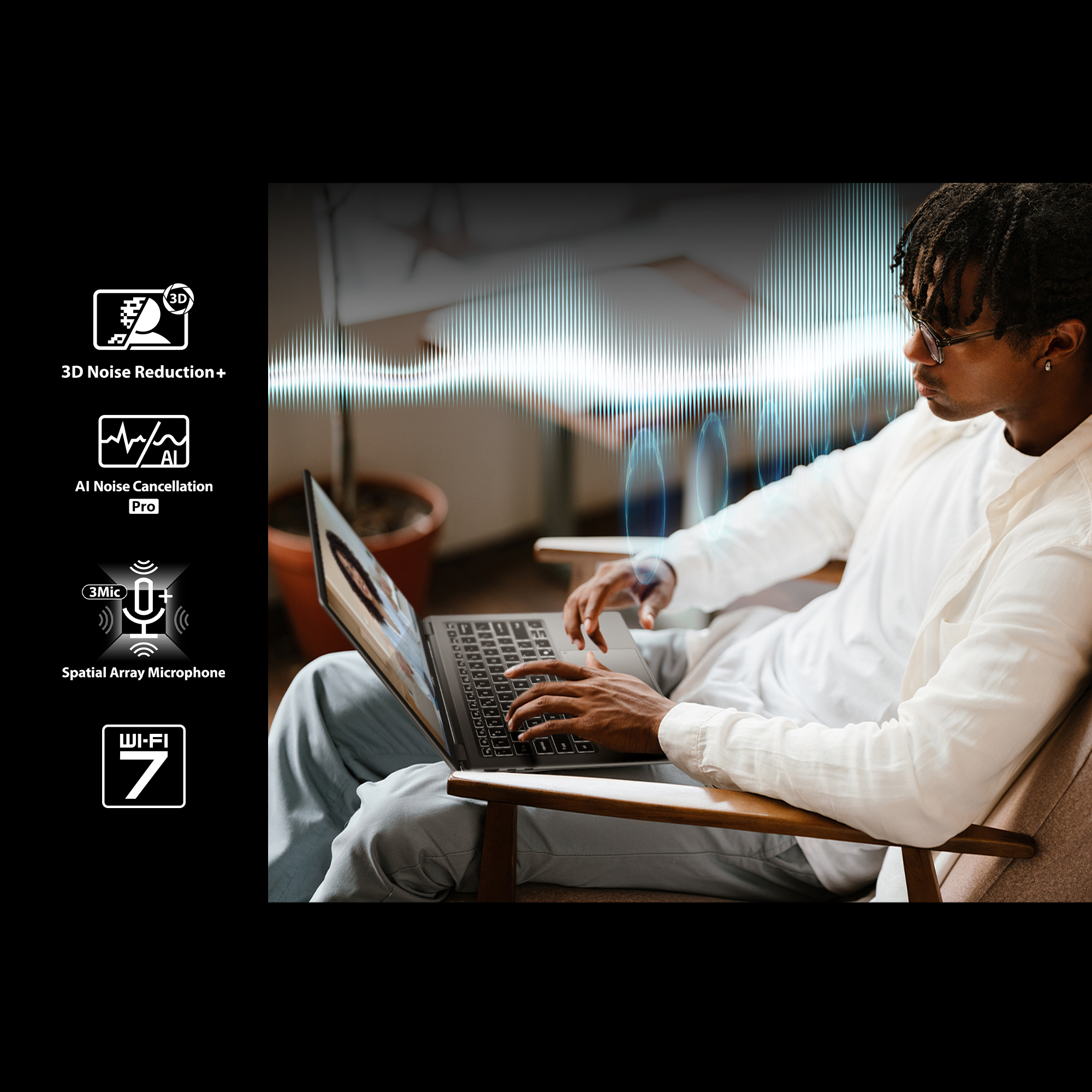 3D noise reduction camera enhances video clarity in low-light environments, keeping visuals sharp and natural even in motion. At the same time, advanced AI noise filtering focuses on your voice while minimizing background distractions, ensuring every meeting sounds clear, confident, and truly face to face.