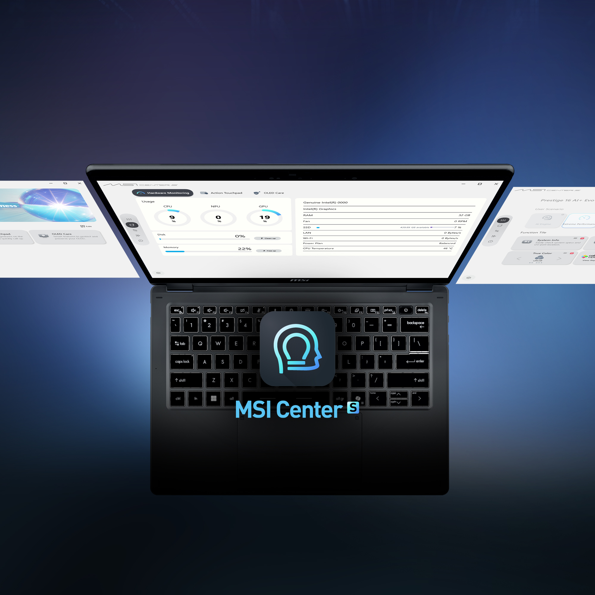 The newly redesigned MSI Center S brings a cleaner, more intuitive interface that puts every system setting within easy reach. Streamlined layouts and simplified controls make managing your laptop faster and more effortless than ever.