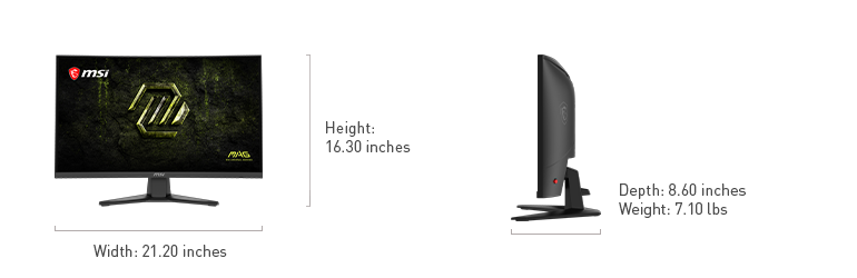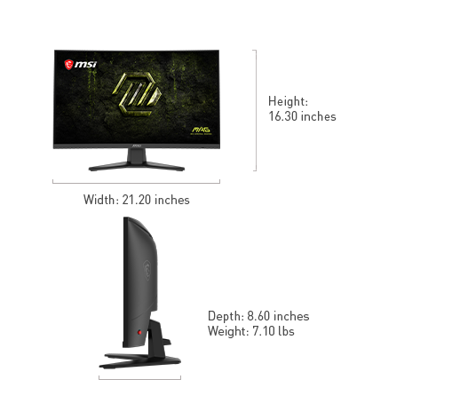Dimensions w/ Stand 21.2" x 16.3" x 8.6"