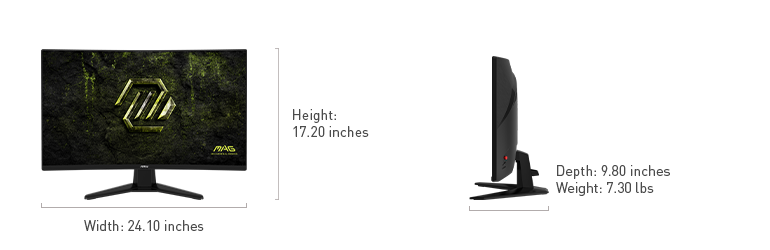 | Dimensions | w/ Stand 24.1" x 17.2" x9.8" |