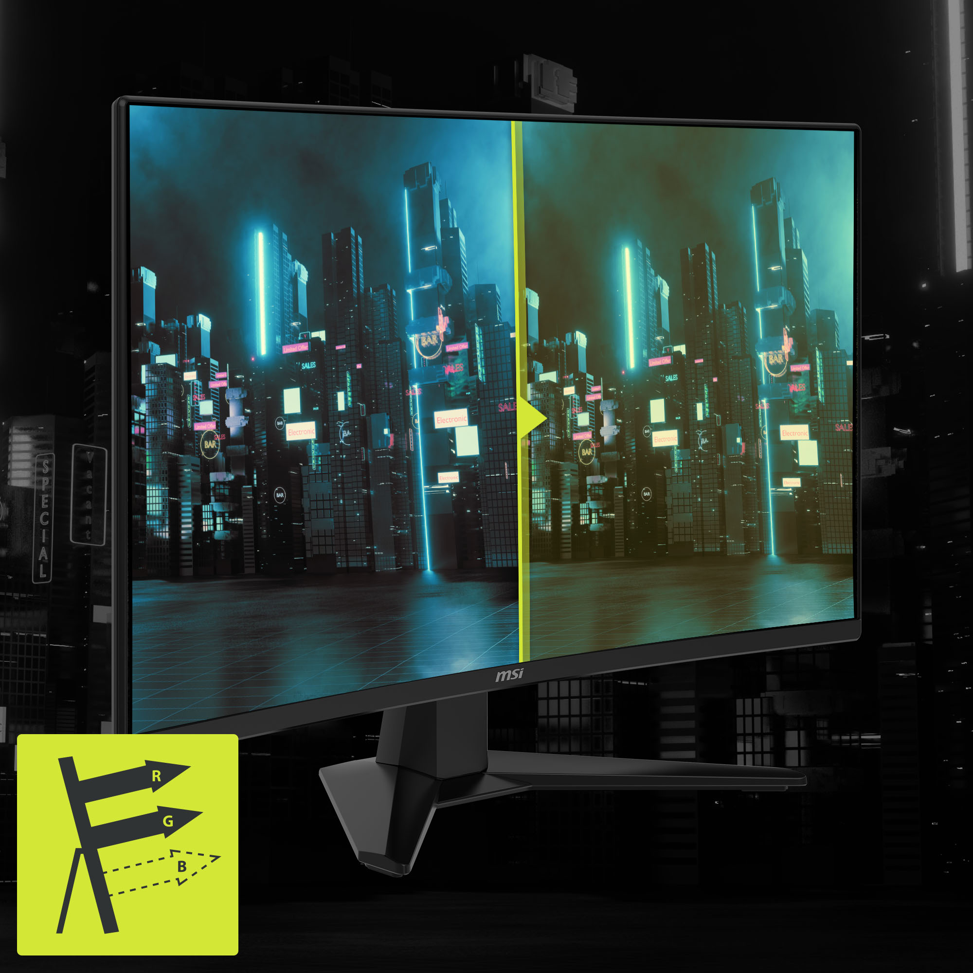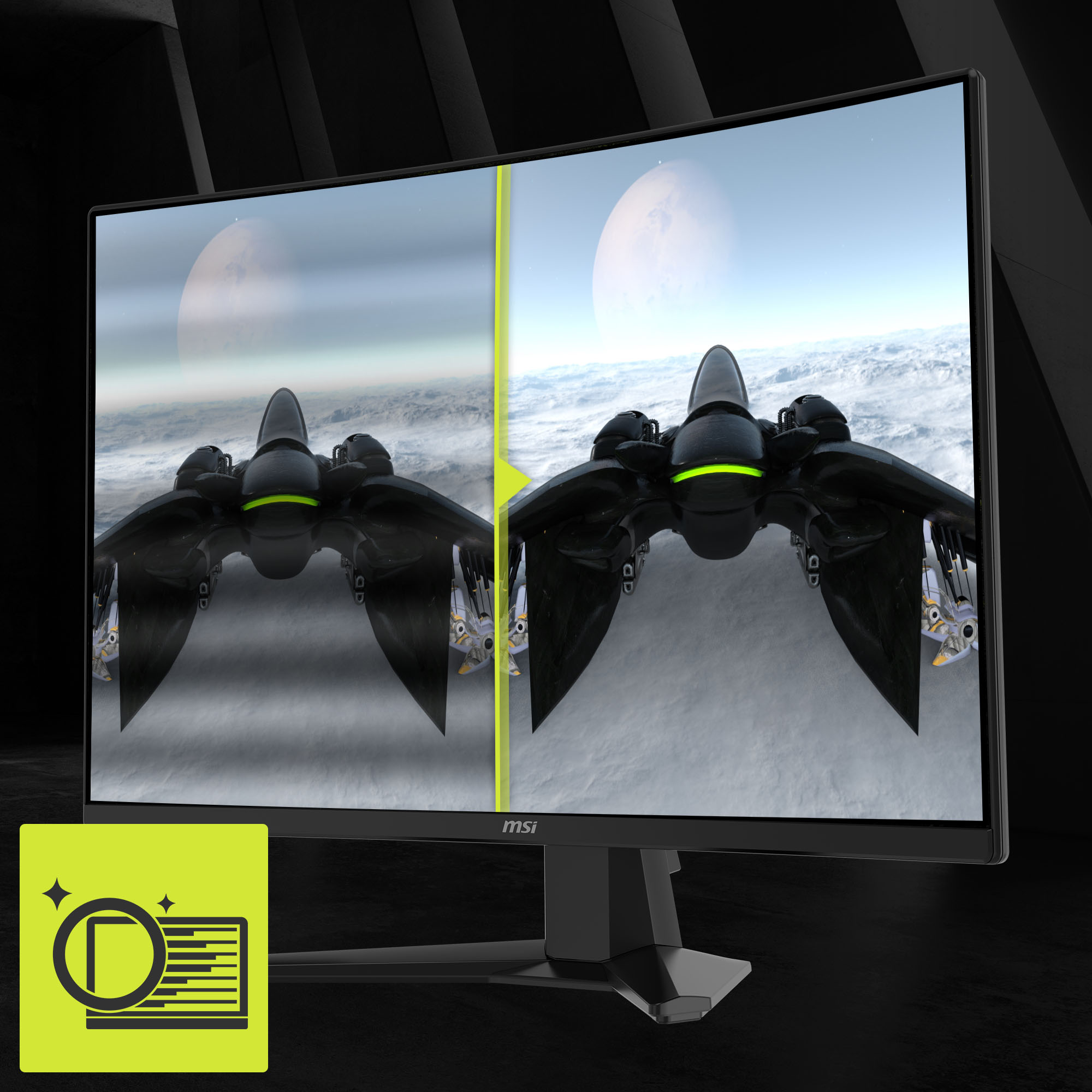 MSI AI Vision enriches details in dark areas and optimizes brightness and colors. HDMI™ CEC Profile Sync supports multiple devices (PC console, mobile, or laptop) and can automatically detect device settings.