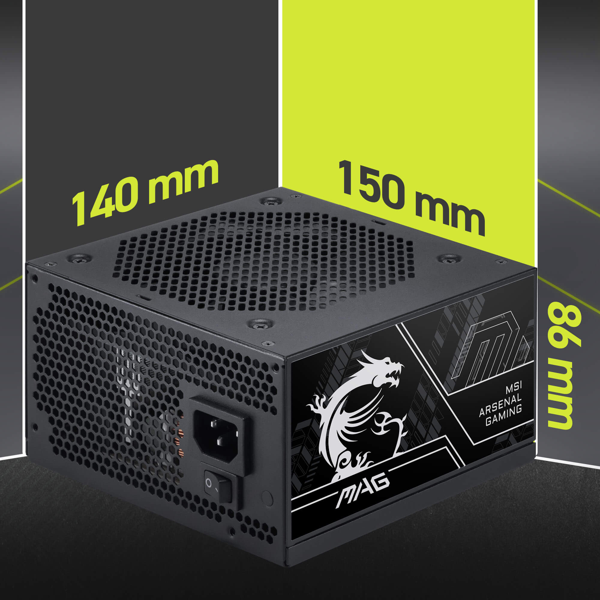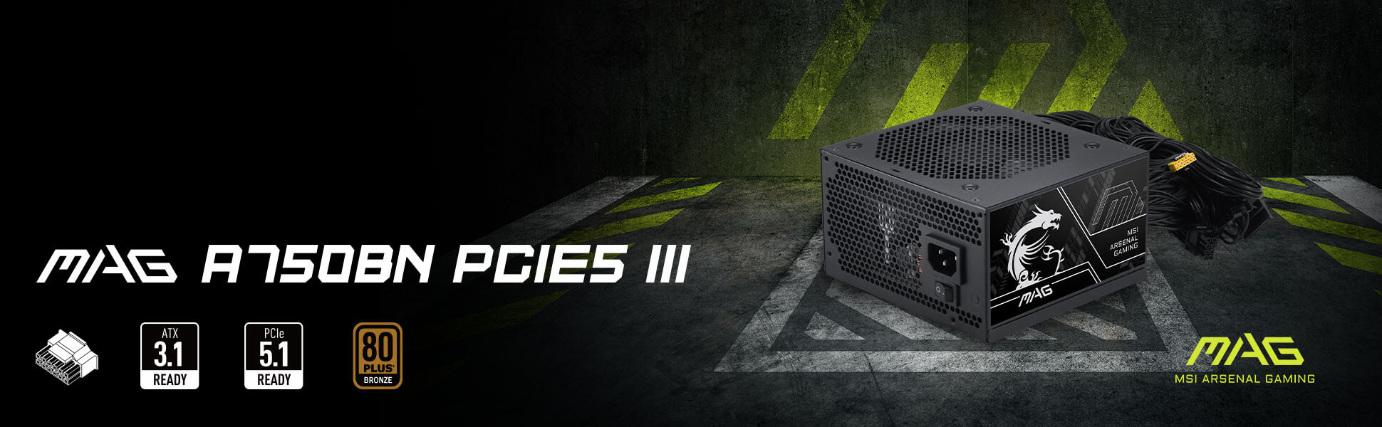 The MAG A750BN PCIE5 III provides 80 PLUS Bronze-certified power efficiency, a native 12V-2x6 connector to support the latest graphics cards series, and is ATX 3.1 ready, cooled by a 120 mm hydraulic bearing fan for cooling performance.