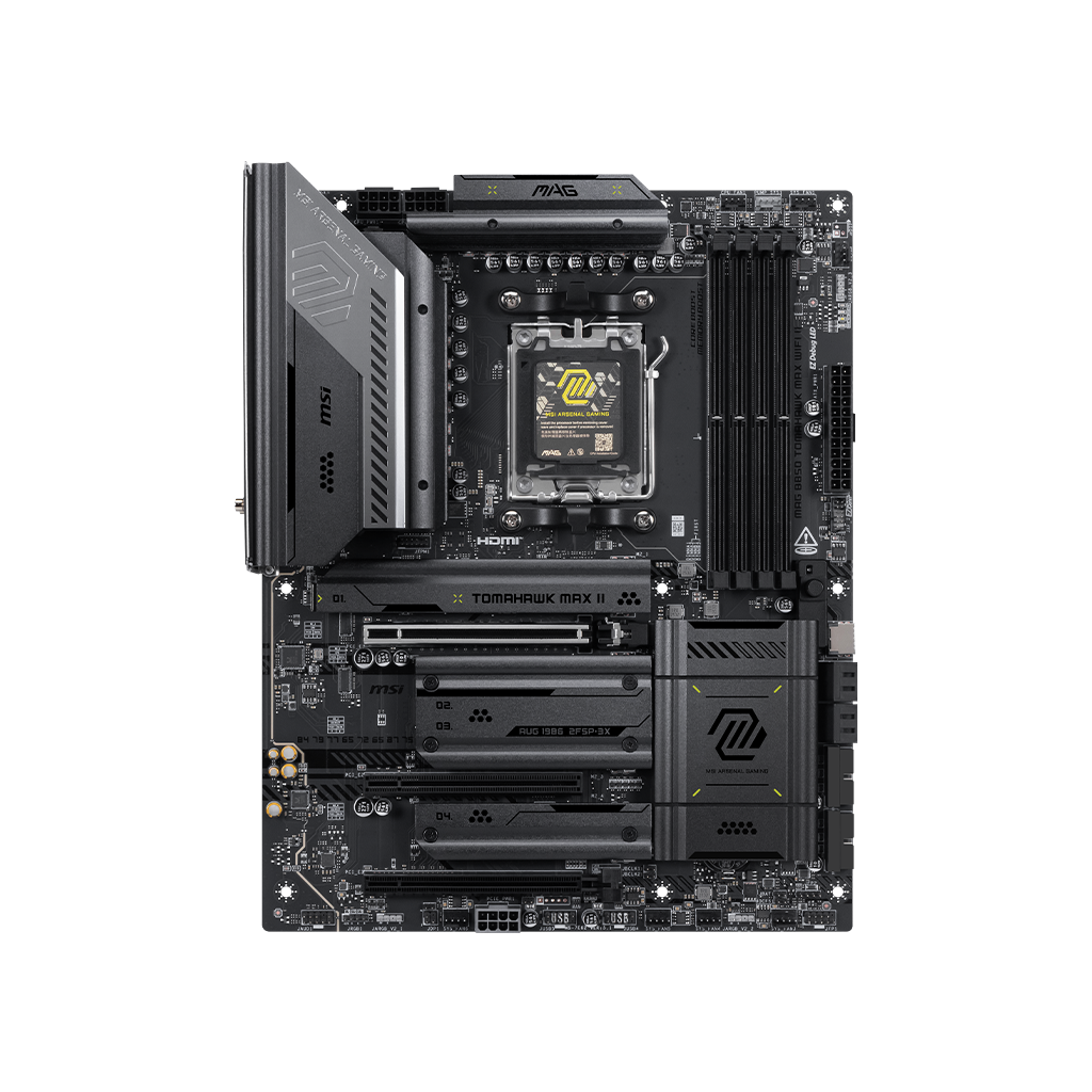 The MAG B850 TOMAHAWK MAX WIFI II is a gaming oriented ATX motherboard that is contructued with a 14 Duet Rail Power System and the latest AMD B850 chipset which supports AMD Ryzen 9000 / 8000 / 7000 series desktop processors, featuring PCIe 5.0, 5G LAN, full speed Wi-Fi 7 and DDR5 support that balances both value and premium hardware.