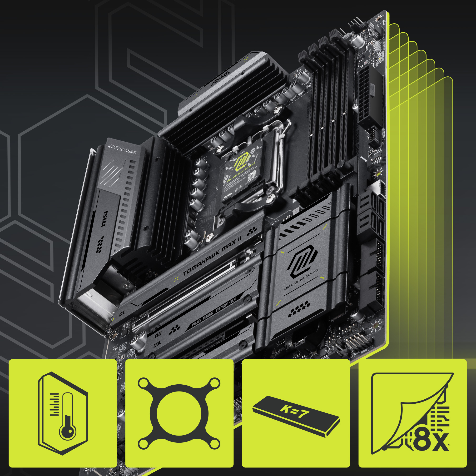 Frozr Guard: Extended Heatsink design, 7W/mK MOSFET thermal pads, extra choke thermal pads and EZ M.2 Shield Frozr II for improved thermal dissipation.
