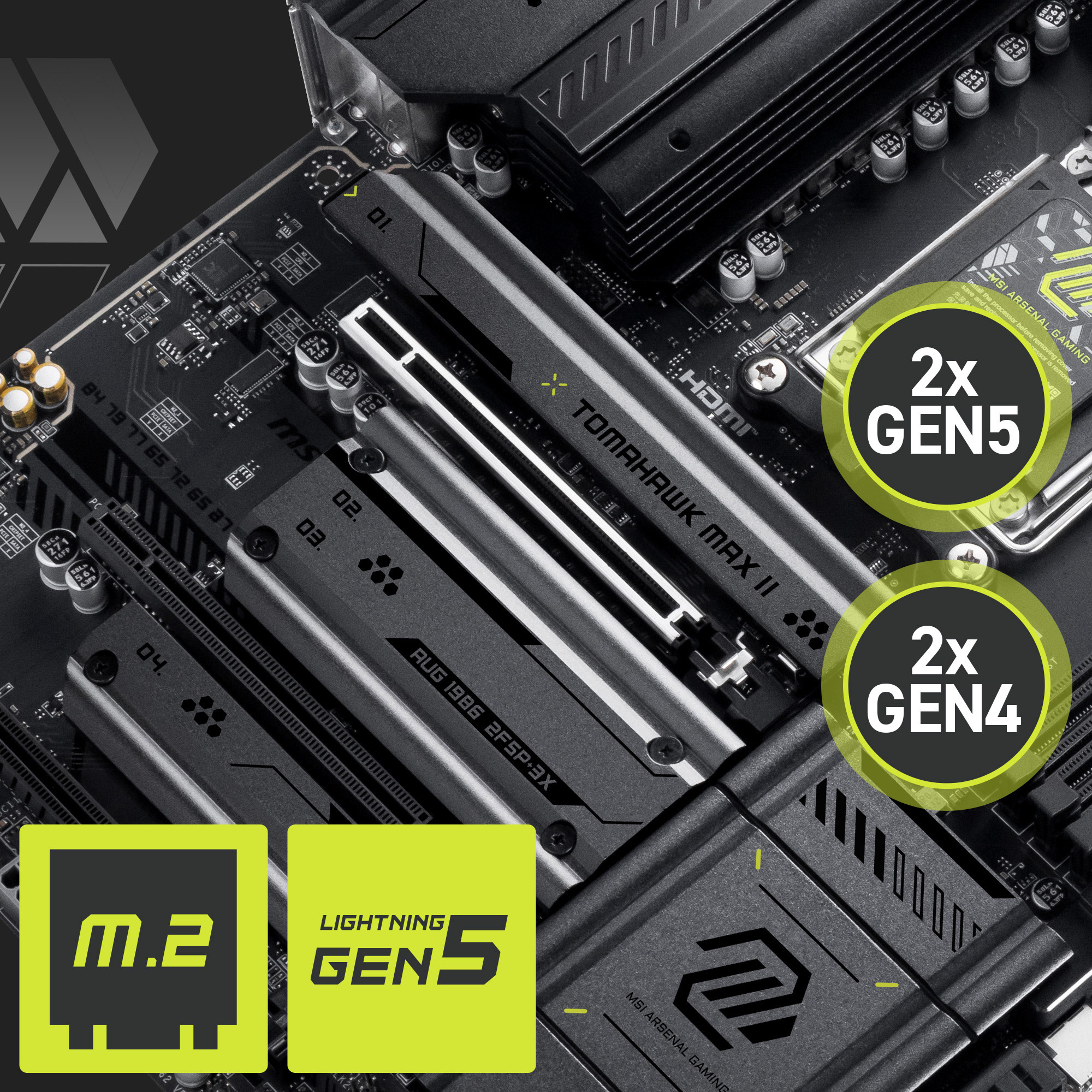The MAG B850 TOMAHAWK MAX WIFI II motherboard features MSI's M.2 slots:
