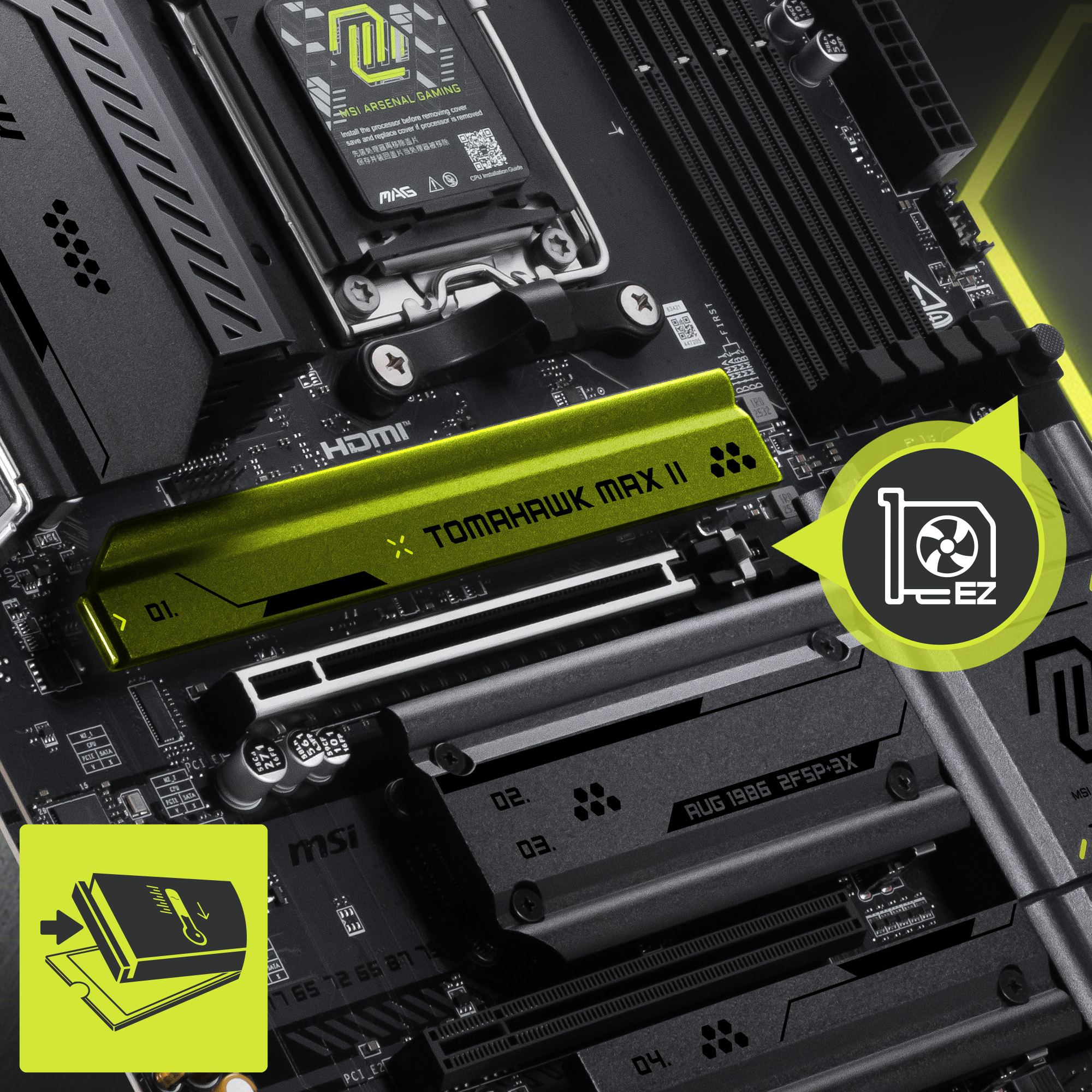 EZ M.2 Shield Frozr II: MSI patented Shield Frozr cover features a tool-free design so users don't have to worry about lost screws or overtightening.
