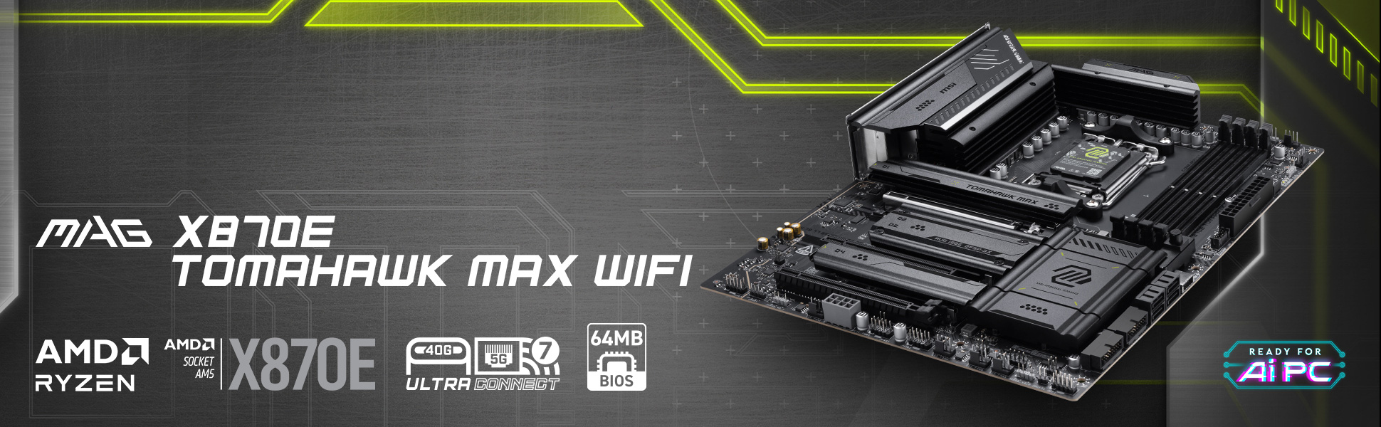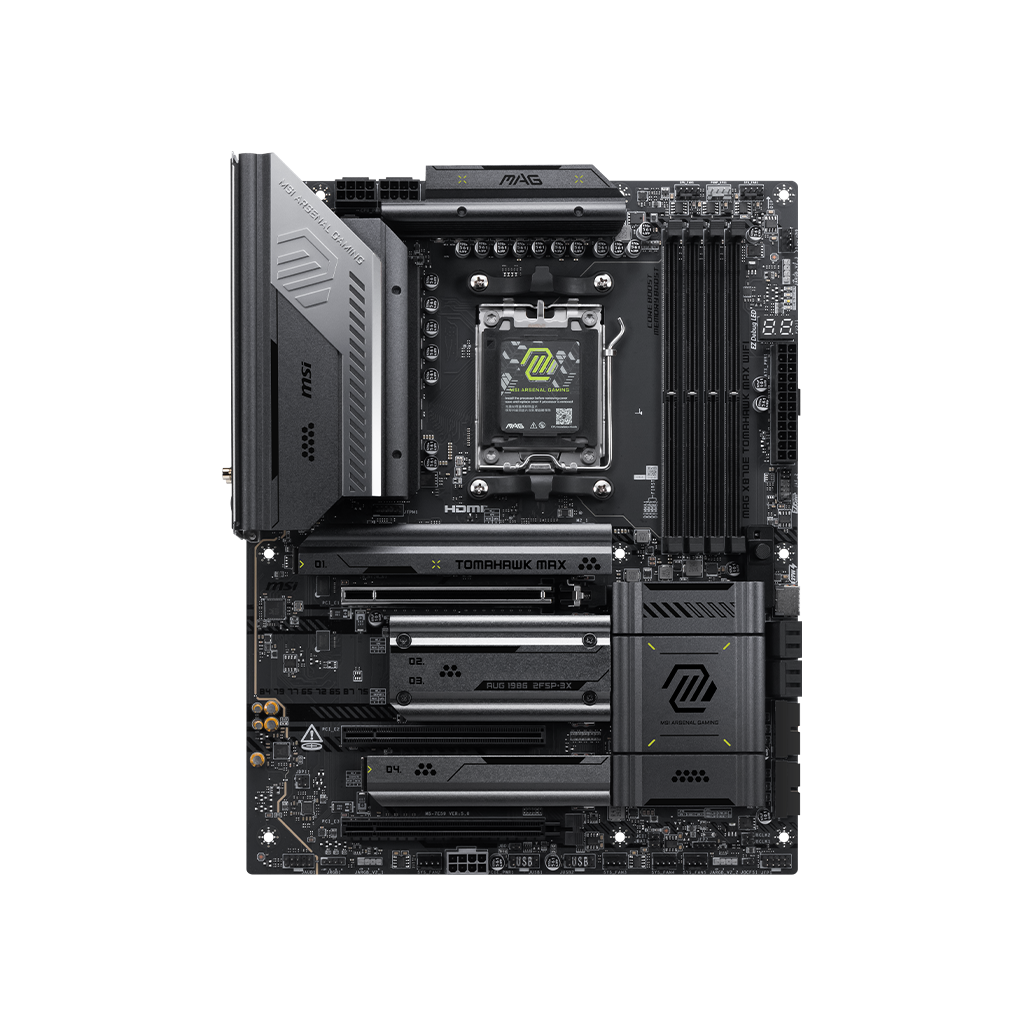 The MAG X870E TOMAHAWK MAX WIFI is a gaming oriented ATX motherboard that is constructed with the latest AMD X870E chipset which supports AMD Ryzen 9000 / 8000 / 7000 series desktop processors, featuring full-speed Wi-Fi 7, 5G LAN, PCIe 5.0 and DDR5 memory that balances both value and hardware.