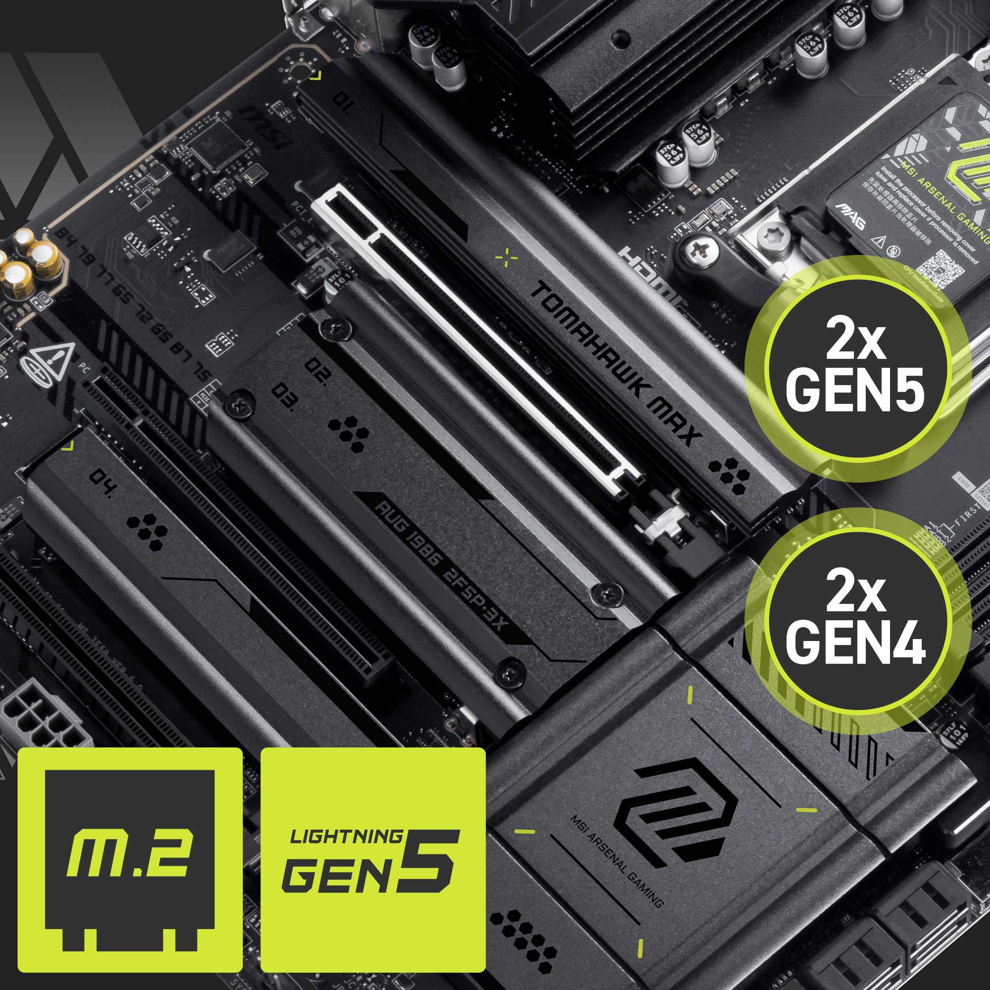 The MAG X870E TOMAHAWK MAX WIFI motherboard features MSI's M.2 slots:
