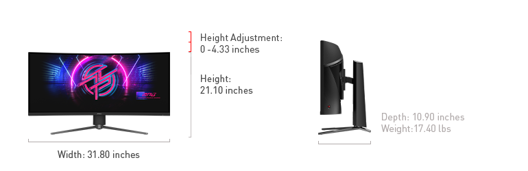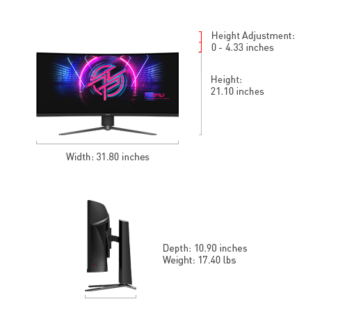 Equipped with an immersive, curved 34" UWQHD (3440 x 1440) Rapid VA panel (1500R) with 240 Hz refresh rate and 0.5ms GtG response time. The MPG 346CQRF X24 curved gaming monitor provides a competitive edge over most opponents. The MPG 346CQRF X24 features Adaptive Sync technology, which matches the display & GPU refresh rates for ultra-smooth gameplay, and an adjustable stand.