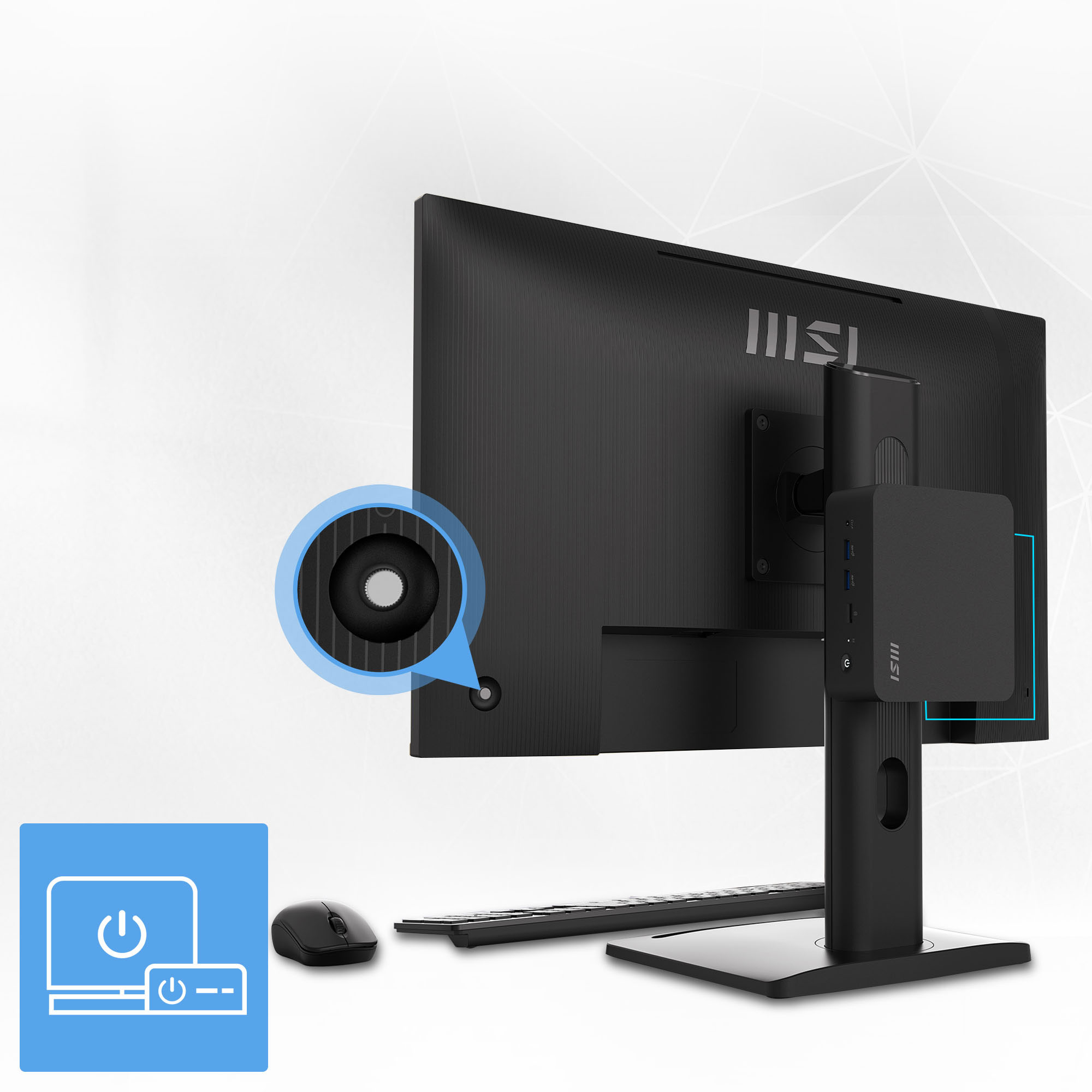 Mini-PC Mountable stand design makes the monitor compatible with the MSI Cubi Series mini-PC for an invisible desktop setup.