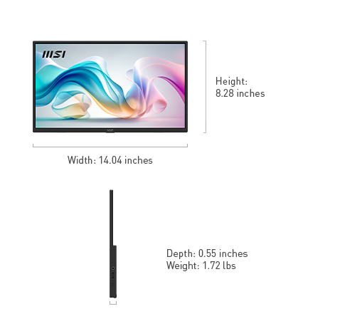 This sleek portable monitor weighs just 0.78 kg (1.72 lbs), making it an easy addition when packing a laptop.