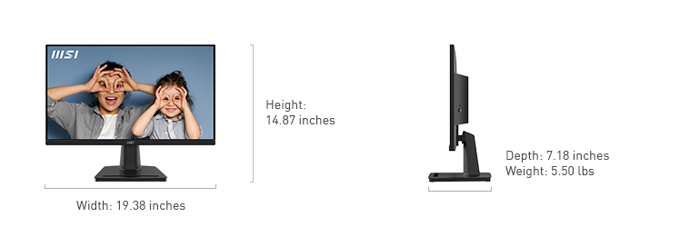 The MSI PRO MP225V monitor features an enlarged display area (21.5 inches) and EyesErgo technology to help improve focus at standard desktop viewing distances. Outfitted with a compact base stand, high 100 Hz refresh rate, and easy to use hardware, the PRO MP225V ushers in a new era of workplace monitors optimized for comfort & productivity.
