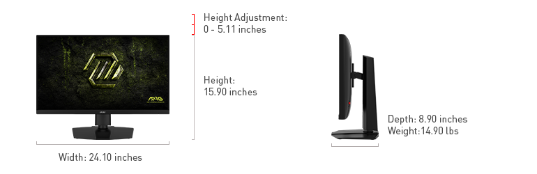| Dimensions | w/ Stand 24.10" x 15.90" x 8.90" |