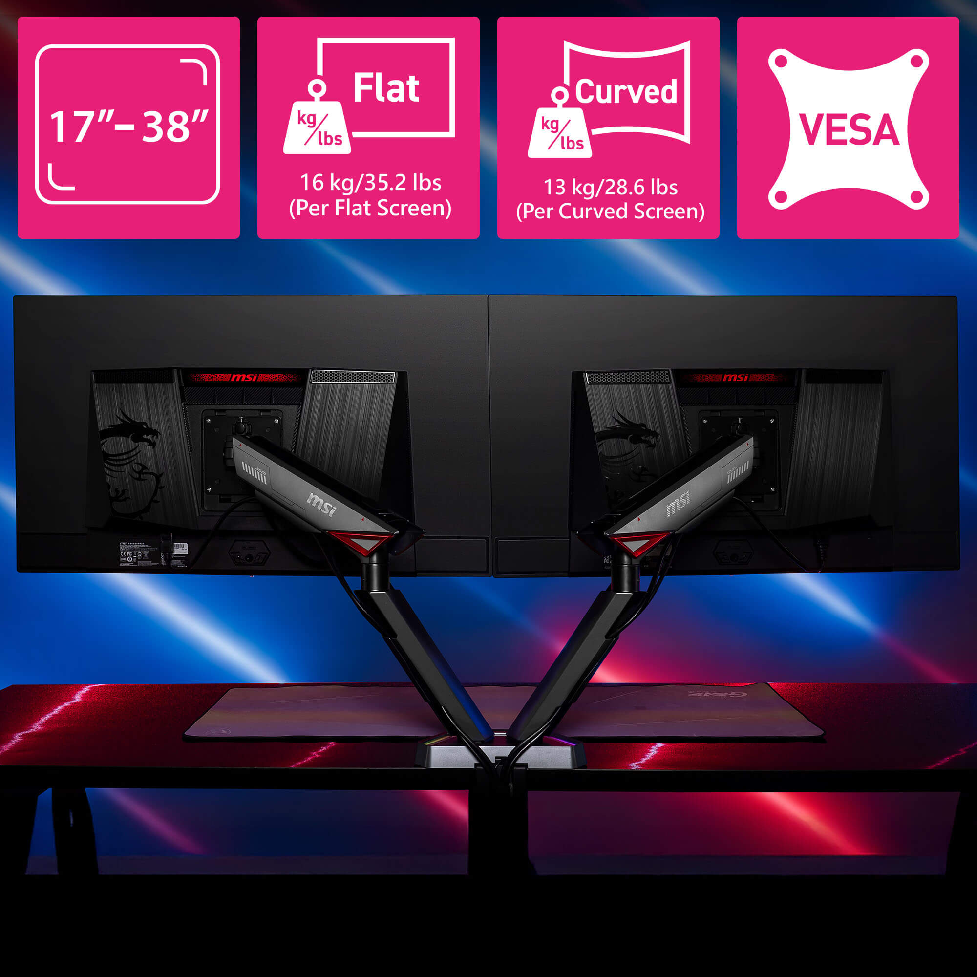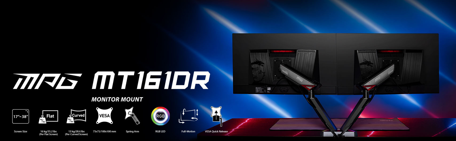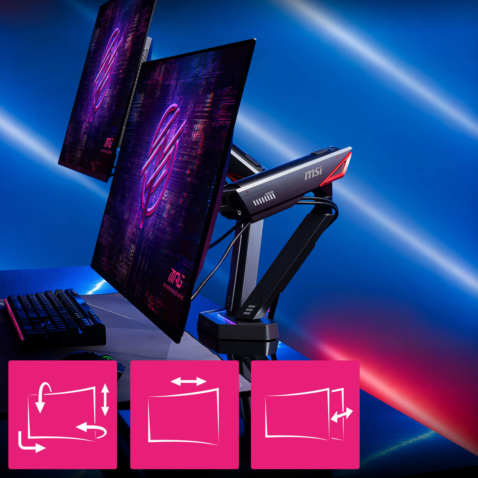 With the versatility of a MPG MT161DR monitor arm, you have the freedom to adjust your screen position. Immerse yourself fully in your gaming experience, all while optimizing space usage and ensuring maximum comfort.