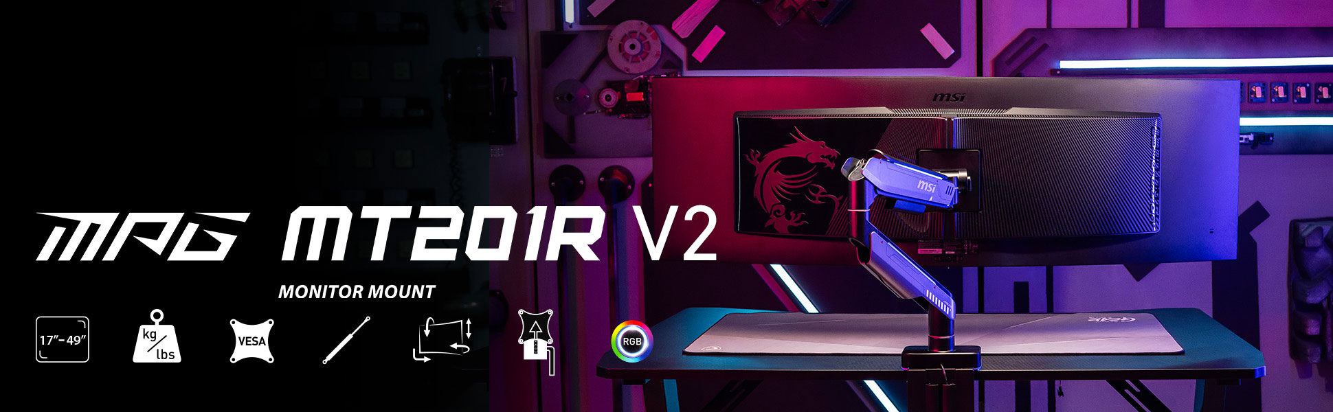With MPG MT201R V2, the versatility of a monitor arm, you have the freedom to adjust your screen position. Immerse yourself fully in your gaming experience, all while optimizing space usage and ensuring maximum comfort.