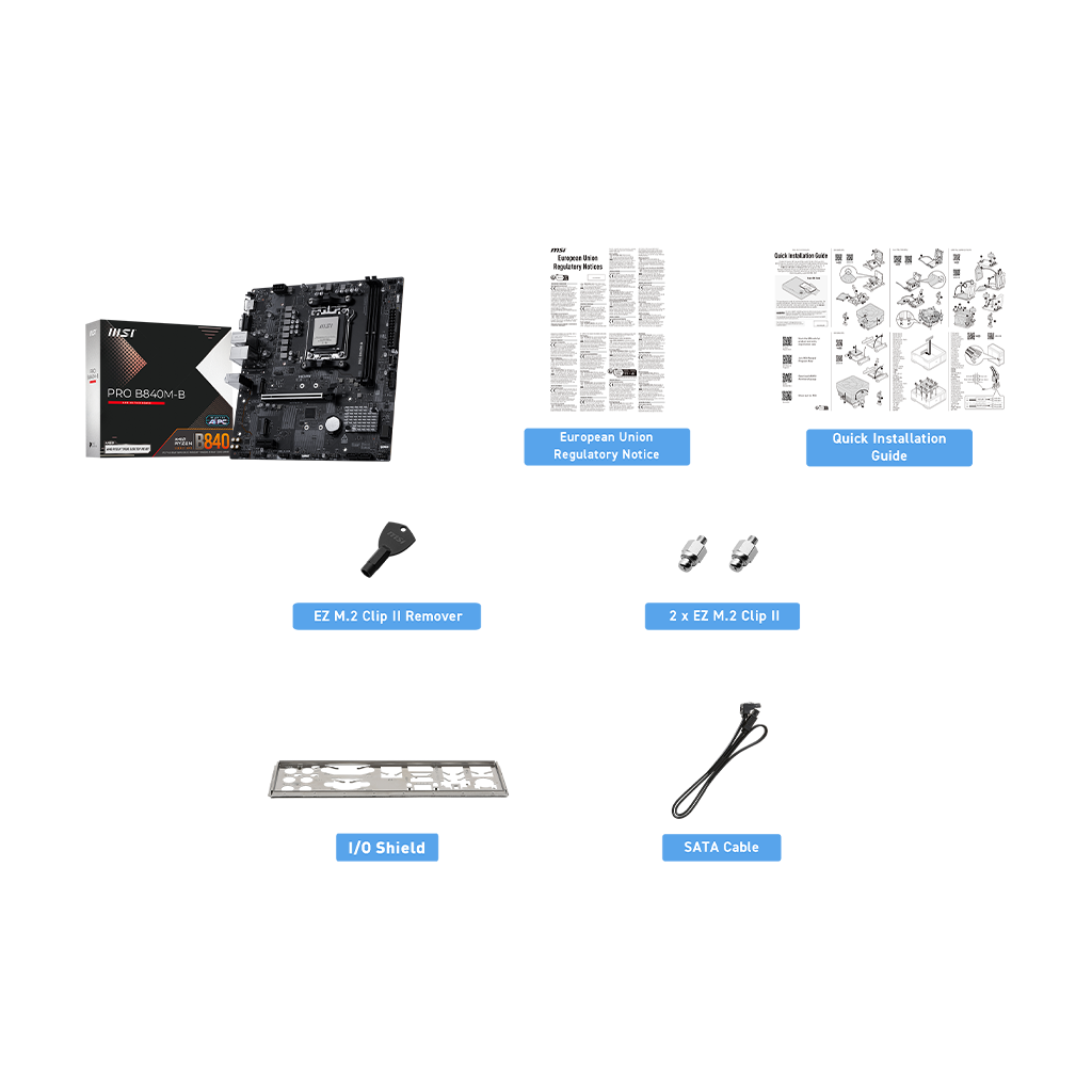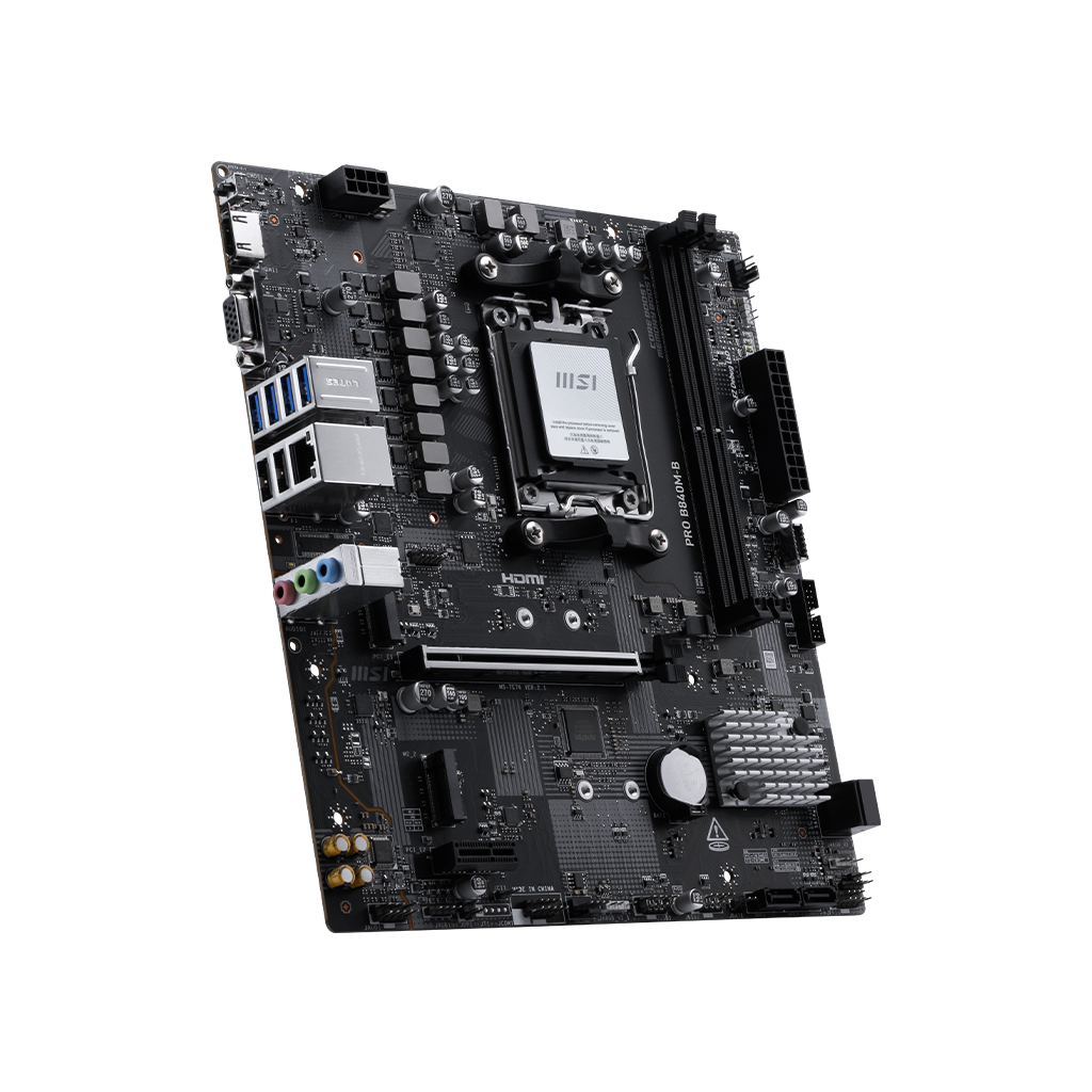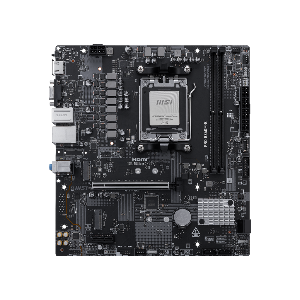 PRO B840M-B is engineered with many exclusive features of MSI, PCIe 4.0 M.2, EZ PCIe Clip II, 2.5G LAN, and Front Type-C, ready for the AMD Ryzen™ 9000 series processors.