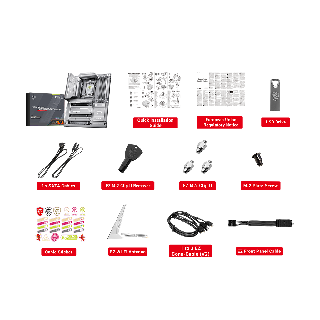 EZ DIY: EZ Link, EZ PCIe Release, EZ Magnetic M.2 Shield Frozr II, EZ M.2 Clip II and EZ Antenna.