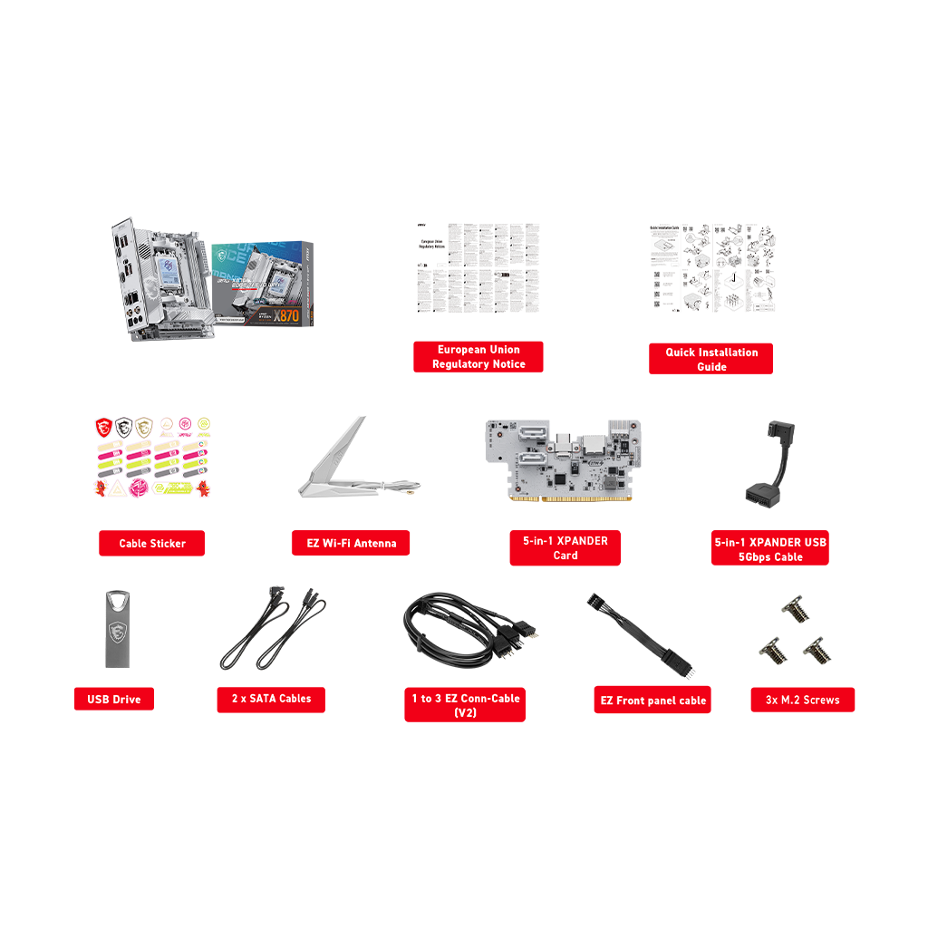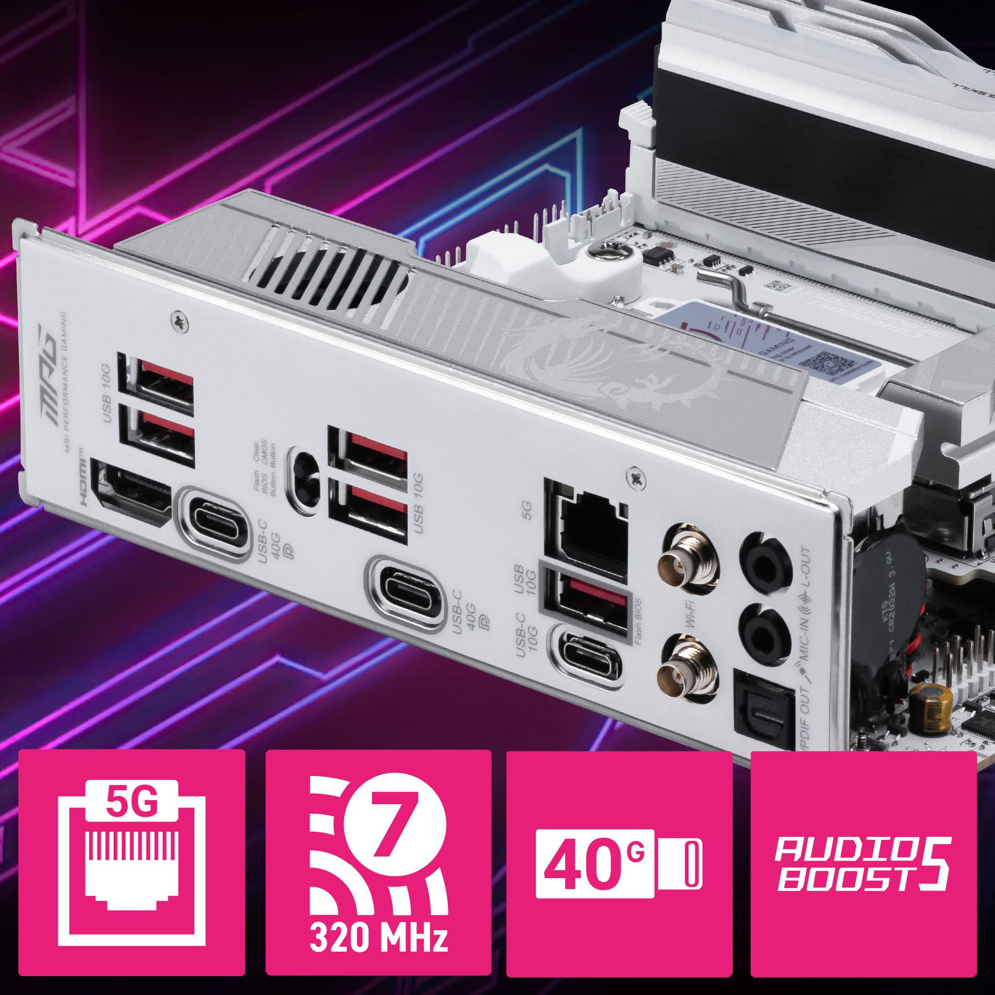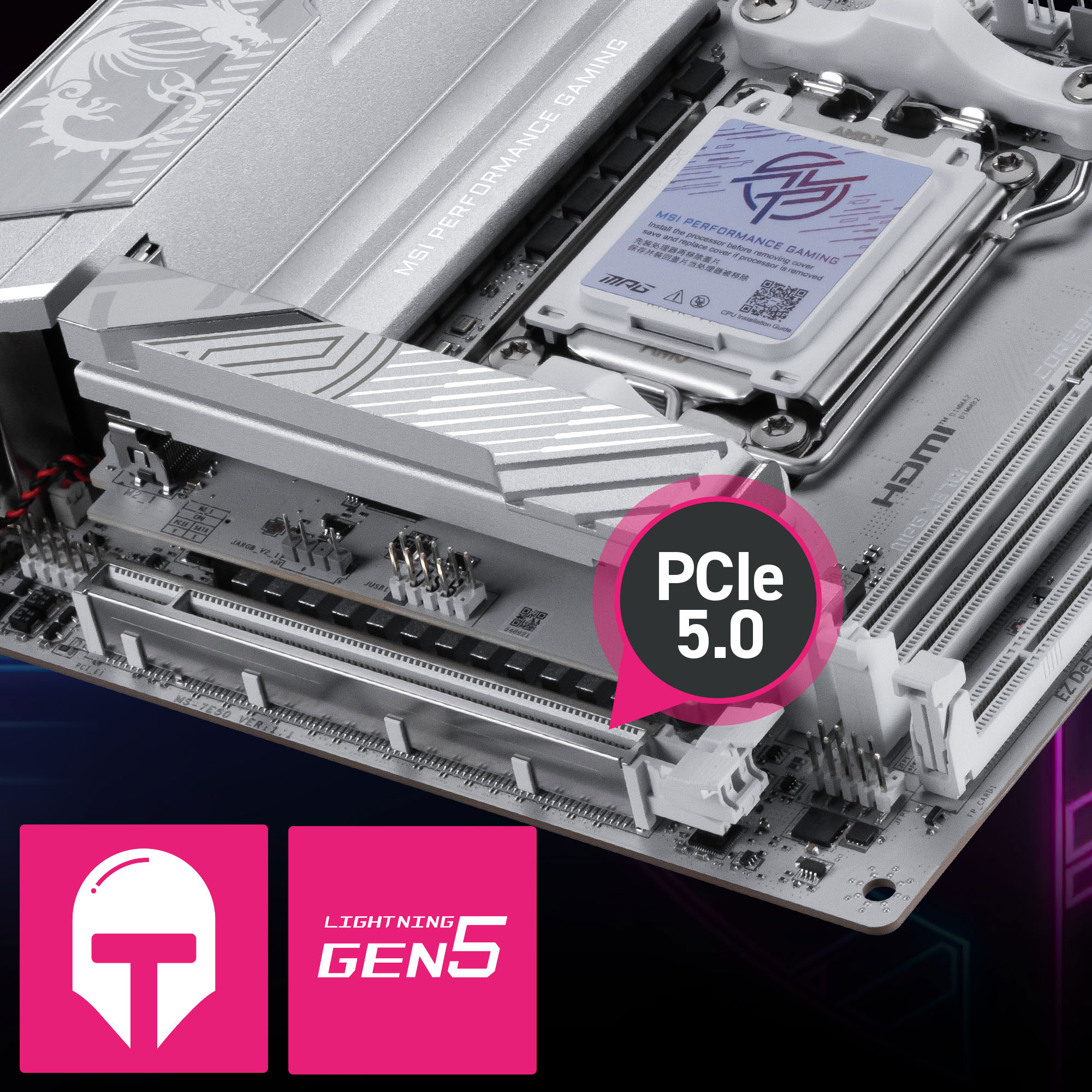 The MPG X870I EDGE TI EVO WIFI is a gaming oriented ITX motherboard with a 8 Duet Rail Power System, constructed around the latest AMD X870 chipset which supports AMD Ryzen 9000 / 8000 / 7000 series desktop processors, featuring PCIe 5.0, 5G LAN, Wi-Fi 7, DDR5 and premium Frozr design that delivers both performance and style.