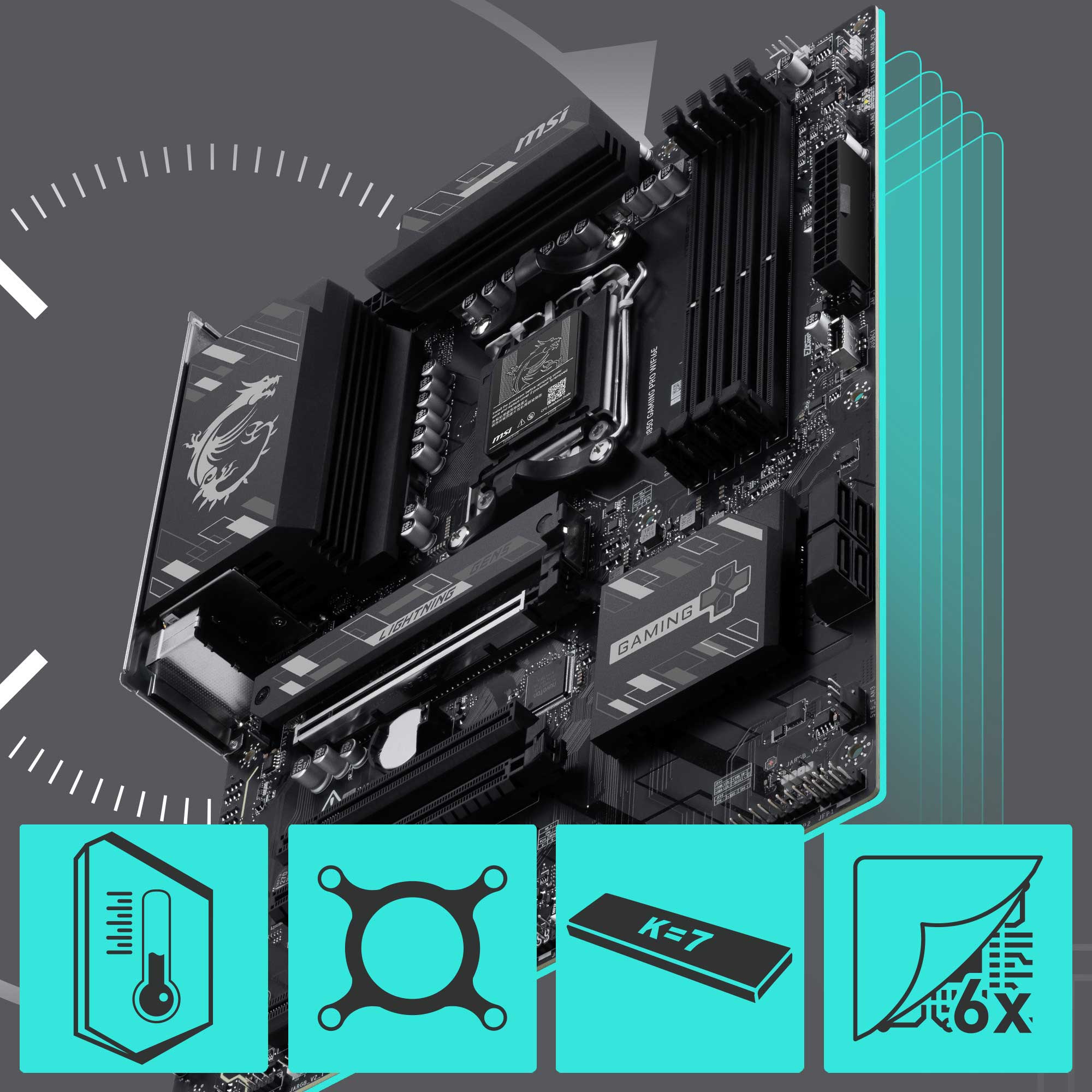 With exclusive Core Boost technology, dual 8 pin power connectors and EZ OC Tuning functions, the B850 GAMING PRO WIFI6E is able to sustain heavy CPU power loads to support system-demanding game settings: