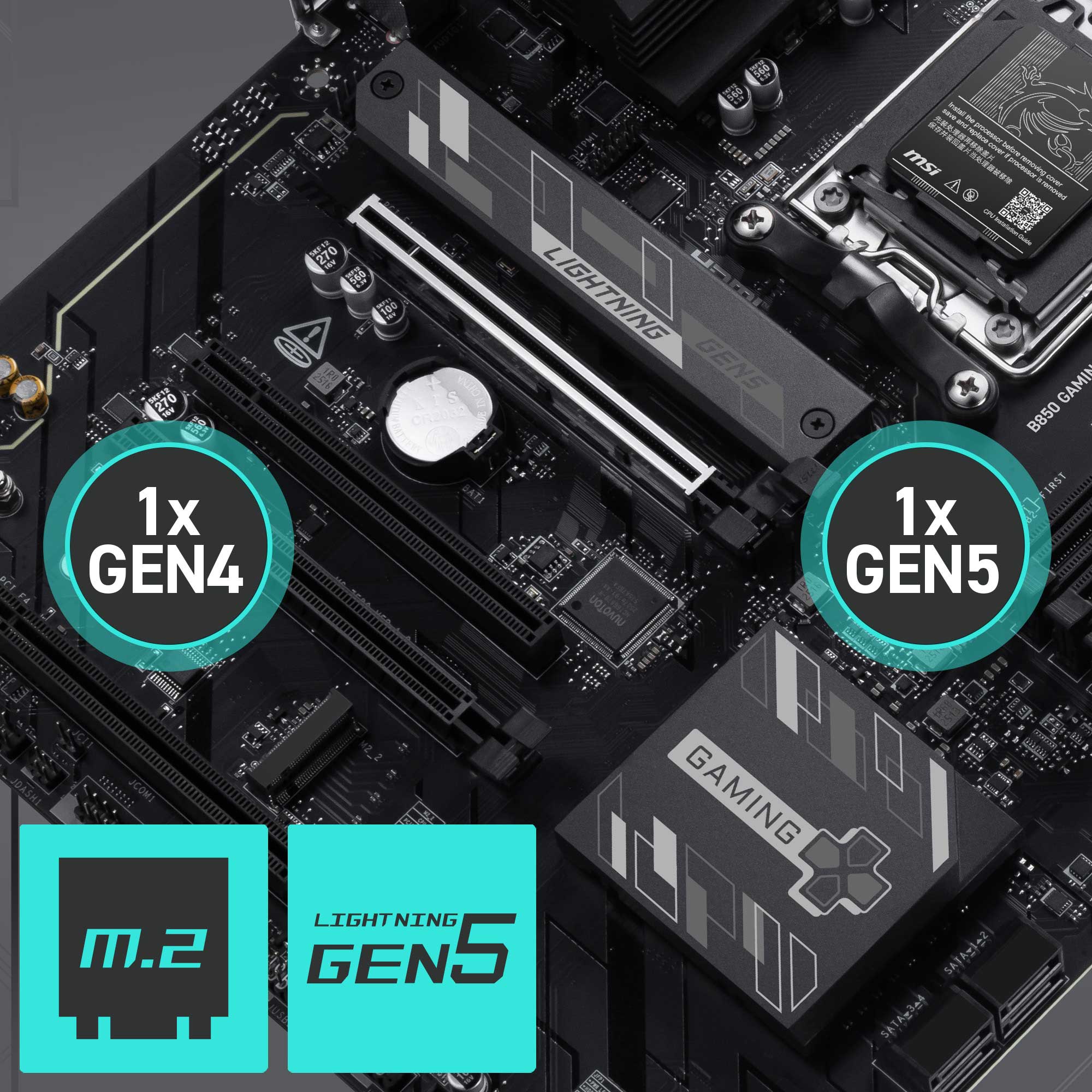 The B850 GAMING PRO WIFI6E motherboard features MSI's M.2 slots: