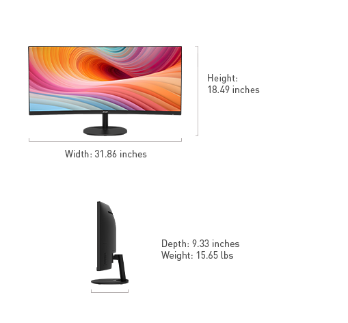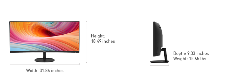 w/ Stand 31.86" x 18.49" x 9.33"
