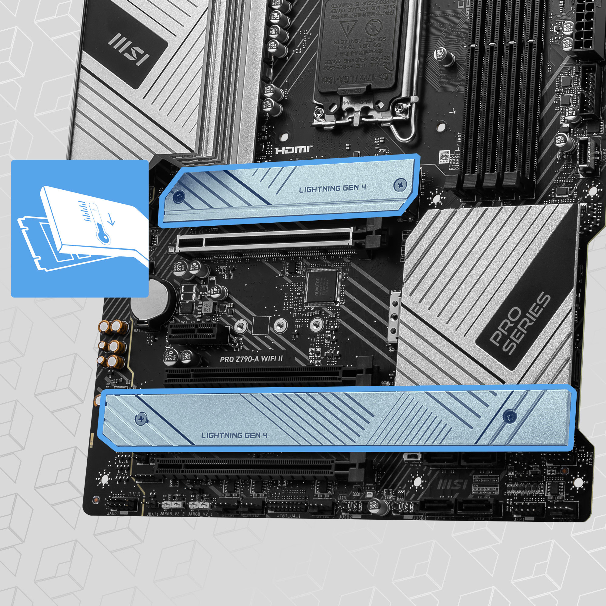 The PRO Z790-A WIFI II motherboard features MSI's Gen4 M.2 slots: