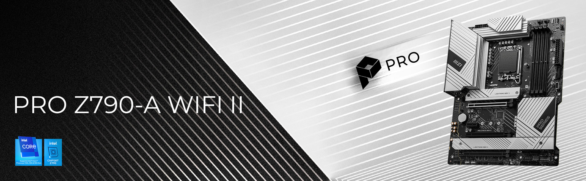 The PRO Z790-A WIFI II motherboard supports 14th, 13th & 12th Gen Intel Core, Pentium Gold, and Celeron processors.